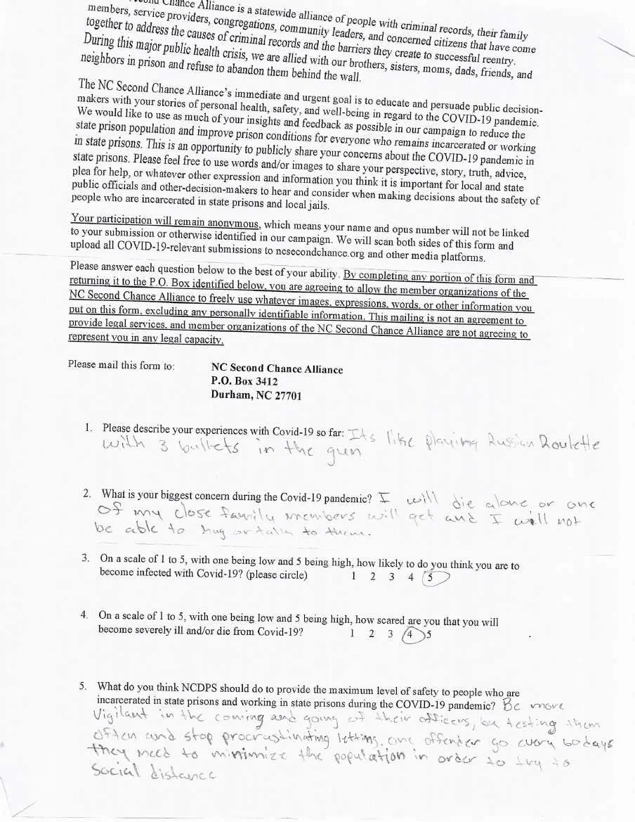 It’s like playing Russian Roulette with three bullets in the gun. Dec 12 Written By Decarcerate Now! NC Voices From Inside Decarcerate Now! NC Decarcerate Now! NC is a broad coalition of North Carolinians calling for justice, fairness, and second chances for people incarcerated in our state prisons, especially Black people and other people of color.